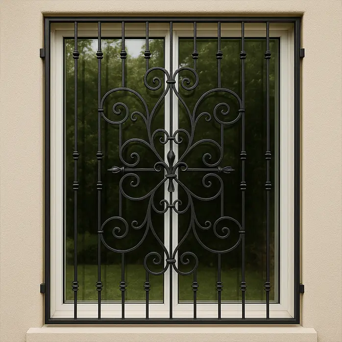 - Iron security windows: with elegant decorative shapes that ensure safety and preserve the aesthetic character of the facade.